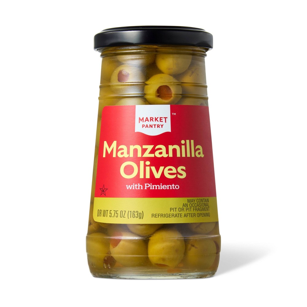 - The manufacturer of Manzanilla Olives with Pimiento is Market Pantry.