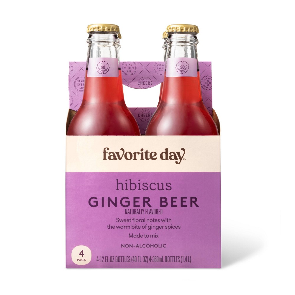 The unique flavors contained in this 4-Pack of Hibiscus Ginger Beer from Favorite Day™ are sure to delight your sense. You’ll love the tart/sweet floral notes of hibiscus combined with the warm bite of ginger spice flavors. It’s perfect for the cooler weather months, but you can enjoy it any time of year. Caffeine-free and naturally flavored, this hibiscus ginger beer doesn’t contain alcohol but can be used to create awesome cocktails like the Dark ‘N Stormy, which is a combination of dark rum, ginger beer and lime. It’s easy to grab a pack or two and take it to your next gathering of family or friends. A little bliss in every bite. Guaranteed to be a favorite or your money back.