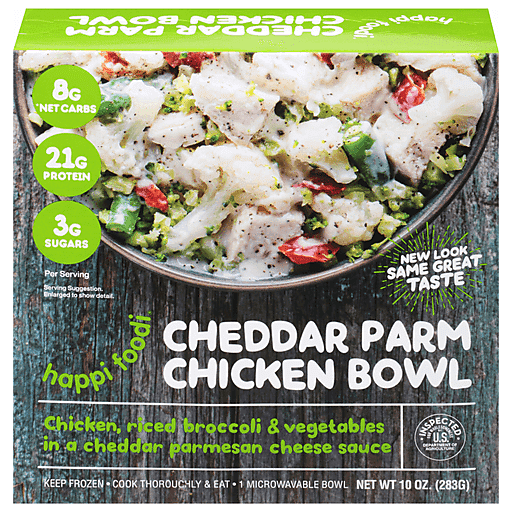 - The manufacturer of Cheddarparm Chicken Bowl is Happi Foodi.