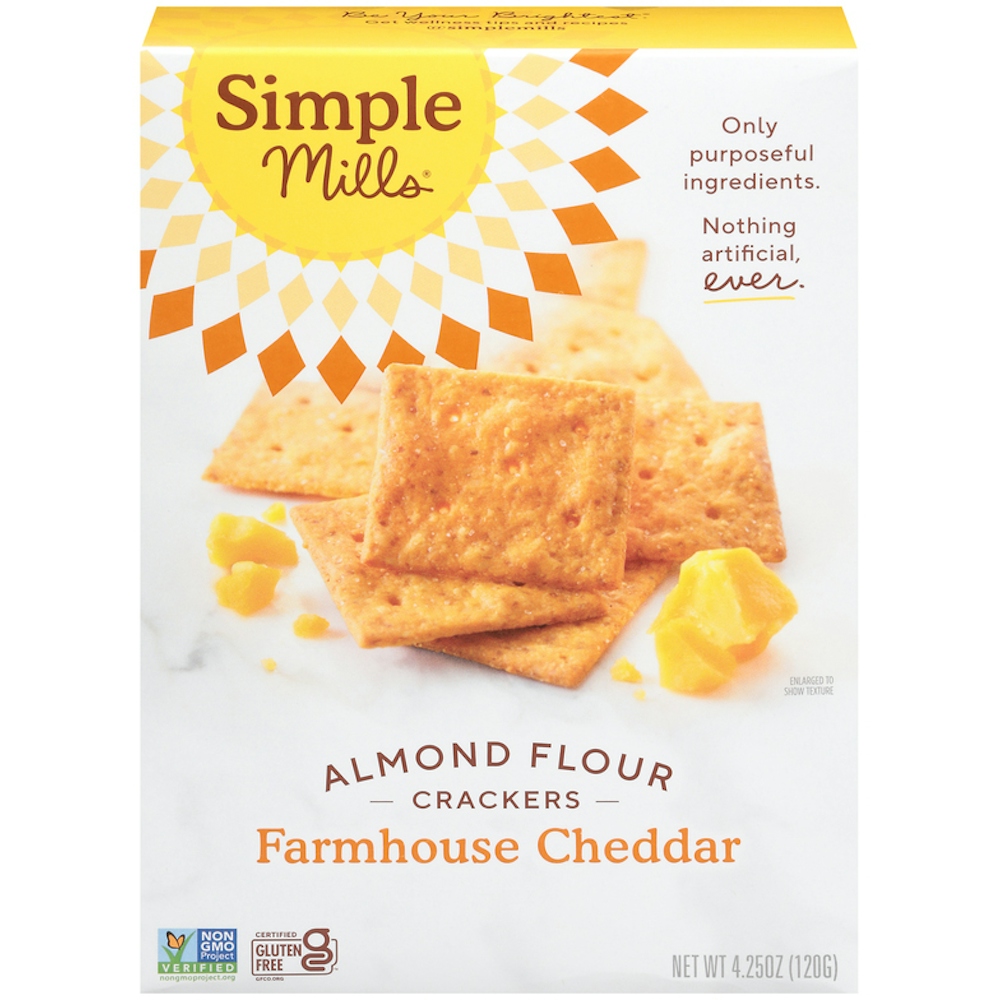 - The manufacturer of Almond Flour Crackers Farmhouse Cheddar is Simple Mills.