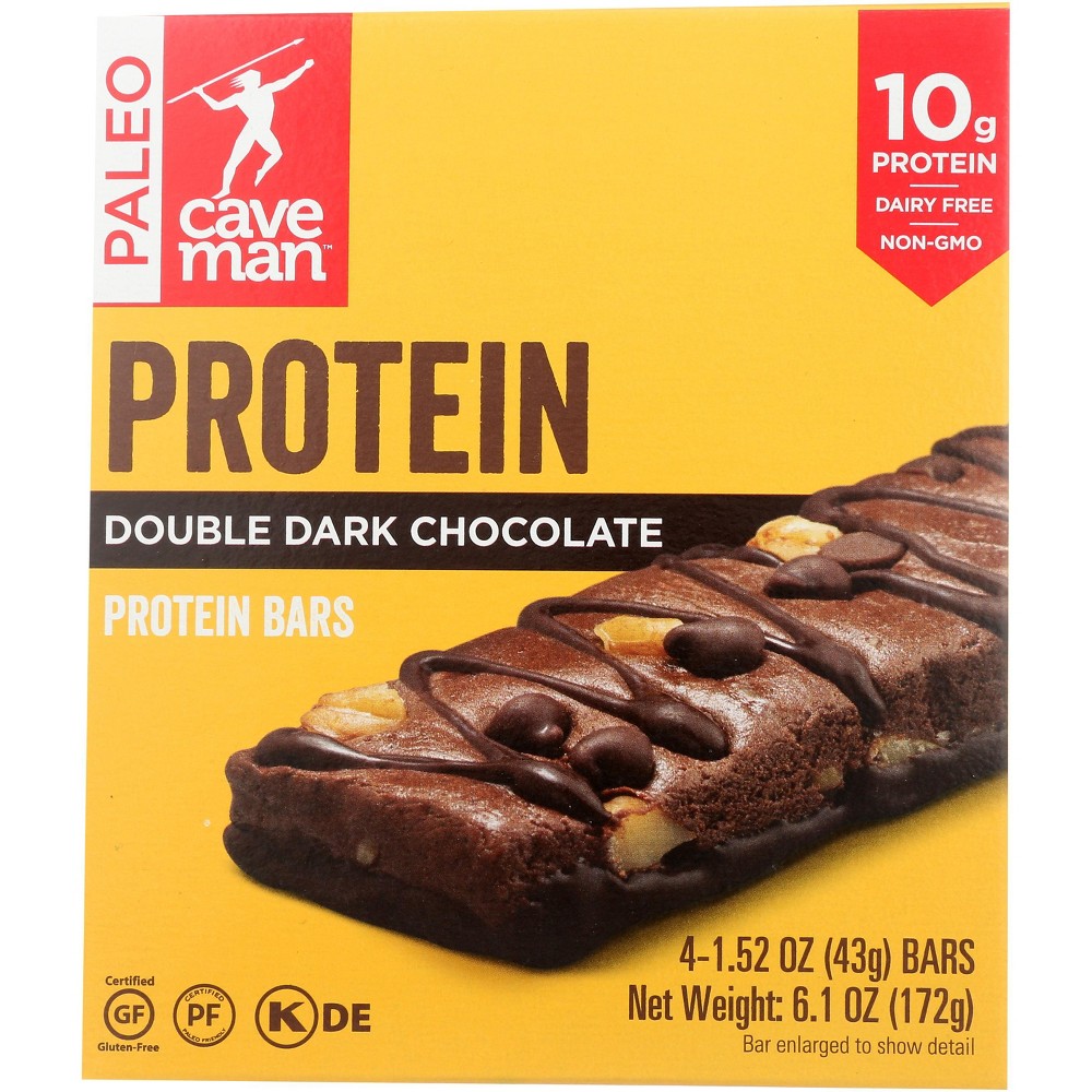 - The manufacturer of Double Dark Chocolate Protein Bar is Caveman Foods.