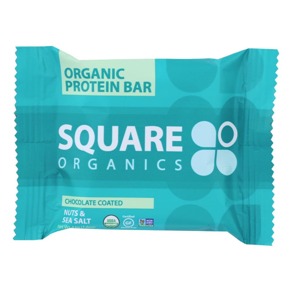 Square Organics Organic Protein Bar With Chocolate Coated Nuts & Sea Salt Proves You Can Actually Feel Good About A Snack Break. This Vegan Chocolate And Nut Treat Is Non-Gmo And Gluten-Free. It's Made From All-Natural And Delicious.