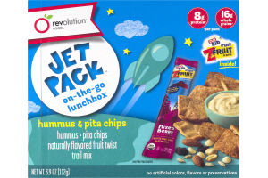 Hummus - Chickpeas, Water, Sunflower Oil, Sesame Tahini, Olive Oil, Sea Salt, Citric Acid, Dried Garlic, Guar Gum, Cumin. Pita Chips - Whole Wheat Flour, Sunflower, Safflower And/Or Canola Oil, Yeast, Whole Grain Rye, Whole Grain Oat, Wheat Bran, Flaxseed, Millet, Sesame Seeds, Seas Salt. Wildberry Flavored Fruit Snack - Concentrated Apple Puree (with Ascorbic Acid), Apple Juice Concentrate, Strawberry Juice Concentrate, Raspberry Juice Concentrate, Blueberry Juice Concentrate, Natural Flavor, Black Carrot Extract (Color), Pectin, Glazing Agent (Coconut Oil, Beeswax). Trial Mix - Peanuts (Peanuts, Peanut, Sunflower Oil), Raisins, Yogurt Drops (Sugar, Palm Kernel and Palm Oil, Lactose, Non-Fat Dry Milk, Non-Fat Dry Yogurt Powder [Non-Fat Dry Milk, Yogurt Culture], Lactic Acid, Soy Lecithin, Natural Flavor), Sunflower Kernels (Sunflower Kernels, Peanut, Sunflower And/Or Cottonseed Oil), Almonds.
