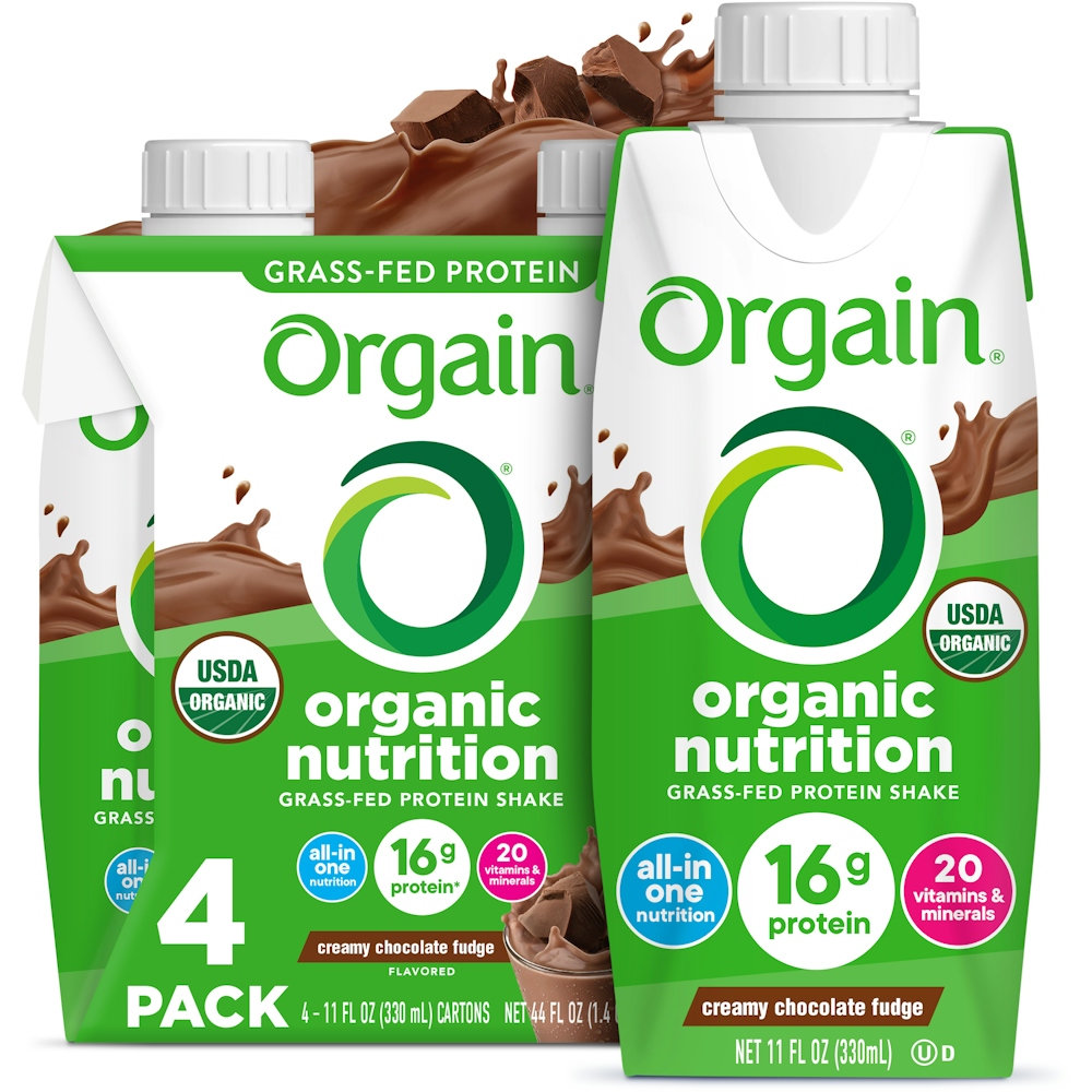 The shake that started it all – Orgain’s flagship All-in-One Organic Nutrition Shake. These shakes were designed by our founder when he recognized the need for a nutrition shake that was full of nothing but clean, organic ingredients. For those in need of a shake that’s as delicious as it is nutritious, look no further. Packed with 16g of organic protein, 20 vitamins and minerals, including Calcium, vitamin C, and Folate, not to mention a nourishing blend of organic fruits and veggies, these shakes serve up optimal nutrition with flavor that will make your taste buds swoon. Unlike conventional nutritional shakes, you won’t find GMOs or any artificial colors, flavors or preservatives here. Certified organic and gluten free, these nutritional shakes are packed with high-quality ingredients. At 250 calories per serving, they're perfect for busy professionals, parents, and anyone in need of a wholesome snack or nutritious meal replacement during their day. Good, clean nutrition ready for you whenever and wherever you need it. OrganicA product that carries the USDA Organic Certification on-pack, thereby meeting the National Organic Program's definition of "Certified Organic" or "100% Certified Organic".