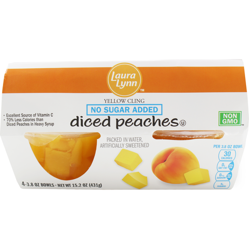 - The manufacturer of Diced Peaches is Laura Lynn.