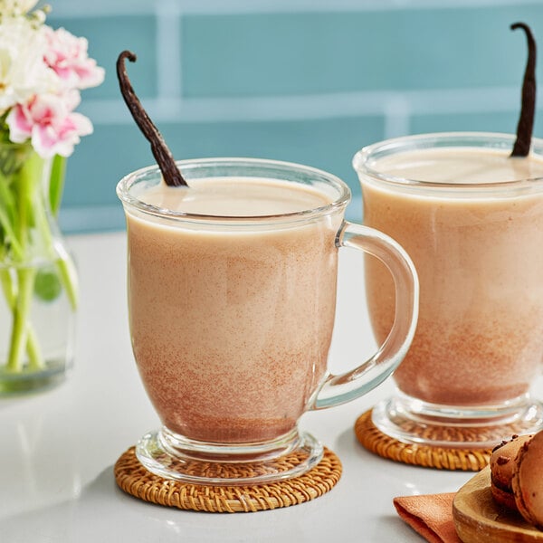 Whether you're whipping up a batch of chai tea or serving a signature chai latte at your cafe, this Dona unsweetened masala chai 1:1 concentrate makes it easy to create authentic chai! Made with organic black tea, this concentrate is spiced with cinnamon, ginger, cardamom, black pepper, and cloves, delivering the perfect balance of warm, aromatic flavor. It's unsweetened, allowing you to customize the flavor of your beverages or offer low-sugar options for your health-conscious customers. This concentrate is crafted with natural, high-quality ingredients, allowing you to serve delicious and authentic chai products without the time and effort required to make chai from scratch! All you have to do is combine 1 part chai concentrate with 1 part milk or dairy alternative and heat, steam, or pour over ice to prepare a delicious cup of chai. Create a signature chai latte by mixing this concentrate with steamed milk or a dairy alternative and topping it with fresh whipped cream and a sprinkle of cinnamon. Mix with cold milk and pour over ice for an iced chai latte perfect for summer! For a unique twist, you can even serve this chai concentrate with root beer and top with a scoop of vanilla ice cream for a chai root beer float! No matter how you choose to serve it, this chai concentrate will deliver a delicious and consistent taste and is sure to become a customer favorite. This bulk 64 fl. oz. container contains (16) 8 oz. servings to keep your busy kitchen well stocked. To preserve the product's freshness, it's recommended to refrigerate after opening. Dona is a New York-based company that produces handcrafted, small-batch chai tea concentrates and expertly sources and blends a wide variety of loose leaf teas and matcha powder. With a focus on high-quality organic ingredients, Dona products offer a flavor for every palate in a wide variety of formats to suit your business's unique needs. Quickly whip up trendy chai beverages with their concentrates, brew a simple cup of tea with their sachets, or create your own signature blends with their loose leaf teas! With a focus on sustainability and ethical sourcing, Dona's products are a great addition to any foodservice operation looking to expand their beverage offerings. Suggested Recipe: Apple Chai Shrub. For the shrub:. 1 cup grated red apple (about 1 medium apple). 1 cup apple cider vinegar. 1/2 cup brown sugar. 1/2 cup white sugar. 4 oz. Dona Chai original chai masala concentrate. For the cocktail:. 1 oz. chai apple cider shrub. 2 oz. bourbon. 1 dash bitters. Sparkling water. Combine grated apples, apple cider vinegar, brown and white sugars, and chai concentrate in a jar. Stir to combine, then cover and refrigerate for 2-3 days. After a few days, strain the shrub. To make the cocktail, combine bourbon, apple chai shrub, and bitters in a class over ice. Top with sparkling water, garnish with an apple slice and a sprig of rosemary, and serve.