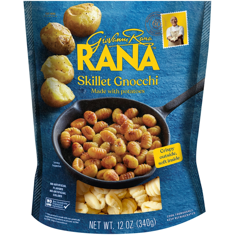 Fresh gnocchi Instantly-recognizable blue bags Imported from Italy. Rana skillet gnocchi offers your customers Rana Pasta expertly crafted in Italy following time-honored traditions. This potato gnocchi enables your customers to enjoy the perfect gnocchi with a crispy outside and soft inside. Merchandise this gourmet favorite alongside fresh pasta and delicious sauces to create the ideal upsell.