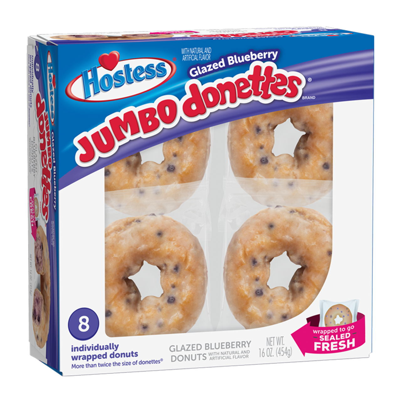 Breakfast just got a whole lot better with HOSTESS Jumbo DONETTES donuts. Close your eyes, and let that first bite whisk you away in blueberry goodness. These sweet treats are glazed to perfection, so you can LIVE YOUR MOSTESS. Need to eat breakfast on-the-go? DONETTES are individually packed to make your morning routine that much sweeter. As a matter of fact, they'll make any part of your day sweet.