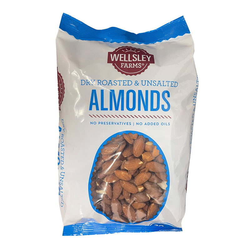 Almonds are a heart healthy snack that the whole family can enjoy, These almonds are dry roasted and unsalted. Made with no preservatives, no added oils, trans fats or added sugars. This pack includes 2.5 lbs. of Wellsley Farms dry roasted and unsalted almonds.