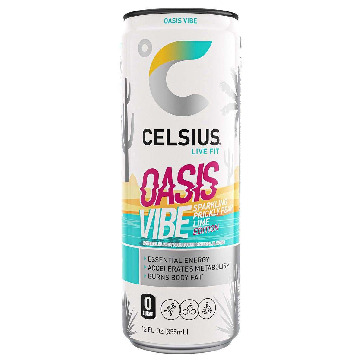 CELSIUS® is functional, Essential Energy, a better-for-you, premium alternative to traditional energy drinks. As a global, lifestyle fitness drink, CELSIUS® was created to help people LIVE FIT, exceed their goals and elevate their everyday lives. Our CELSIUS® VIBE Essential Energy Drinks feature bold flavor combinations that transport you beyond the can to amazing global destinations that inspire us all. From sunny, tropical beaches, to snowy mountainscapes. What’s your vibe? Made with proven, premium ingredients, 7 Essential Vitamins and zero sugar, no artificial colors, no aspartame, no high fructose corn syrup and non-GMO. CELSIUS® is vegan, gluten-free and Kosher. Our proprietary MetaPlus blend contains green tea extract with EGCG. It also includes guarana seed extract, ginger root for flavor and digestion, vitamin C to help support your immune system, vitamin B for energy production, and chromium to help control hunger, making it an ideal pre-workout drink. The bright and succulent Prickly Pear cactus is a sensational fusion of watermelon, kiwi, and bubblegum flavors that are combined with a zesty citrus finish to help make CELSIUS® Oasis Vibe mind-blowingly delicious! Made with clinically proven ingredients, this carbonated flavor of CELSIUS® has the perfect balance of flavor and energy that serves as an awesome pick-me-up for active lifestyles. Make CELSIUS® your go to choice for Essential Energy! CELSIUS® is available in 12 Fl Oz slim cans and sold in a 12-pack for convenience.