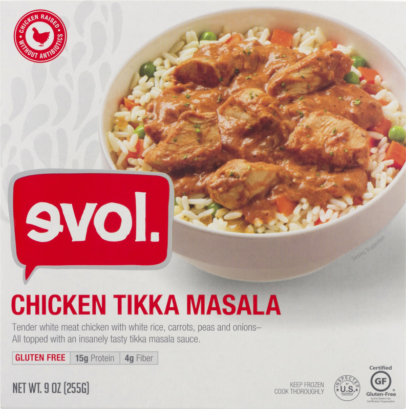 - The manufacturer of Evol, Chicken Tikka Masala is Evol.
