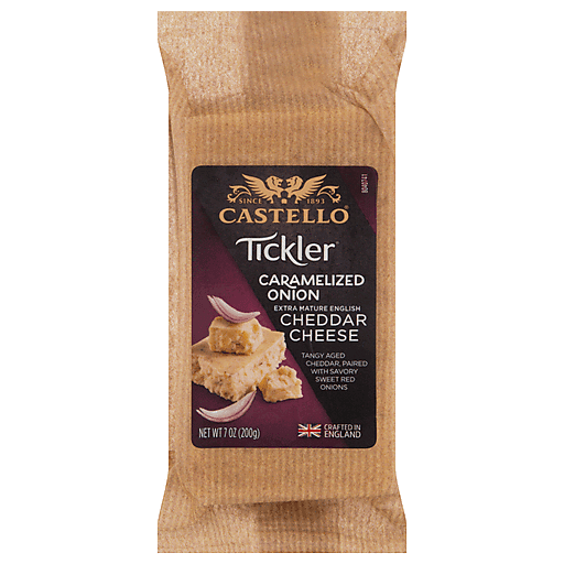 - The manufacturer of Caramelized Onion Extra Mature English Cheddar Cheese is Castello.