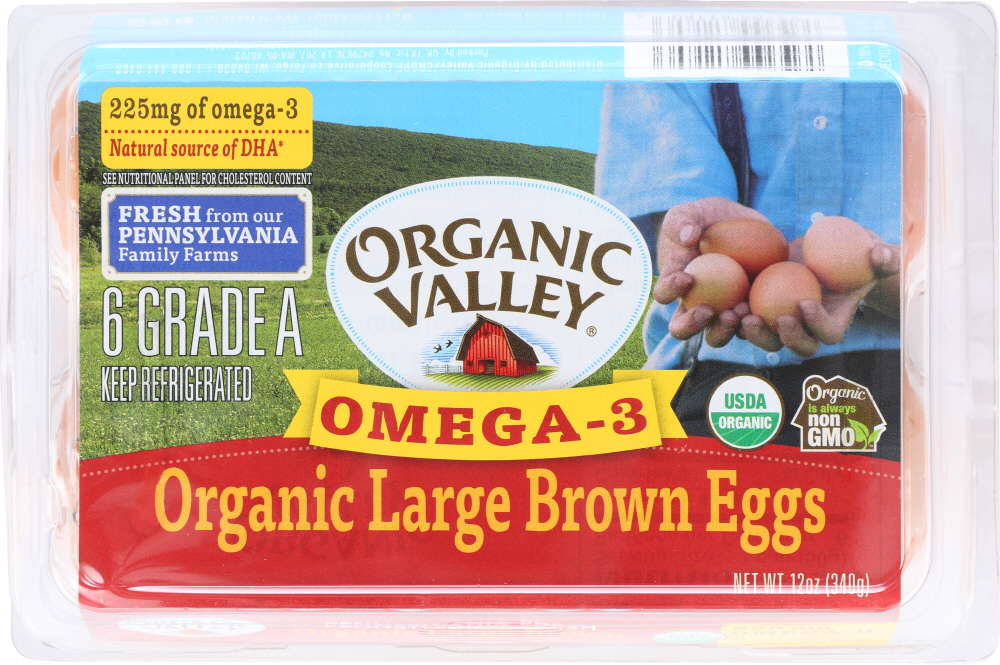 - The product category for Organic Valley, Omega-3 Organic Large Brown Eggs is Eggs.