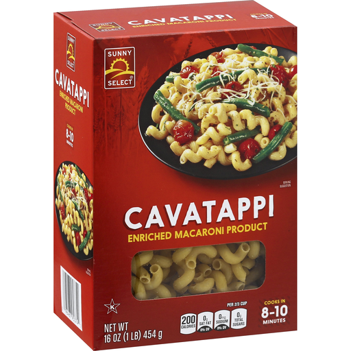 - The manufacturer of Enriched Macaroni Product, Cavatappi is Sunny Select.