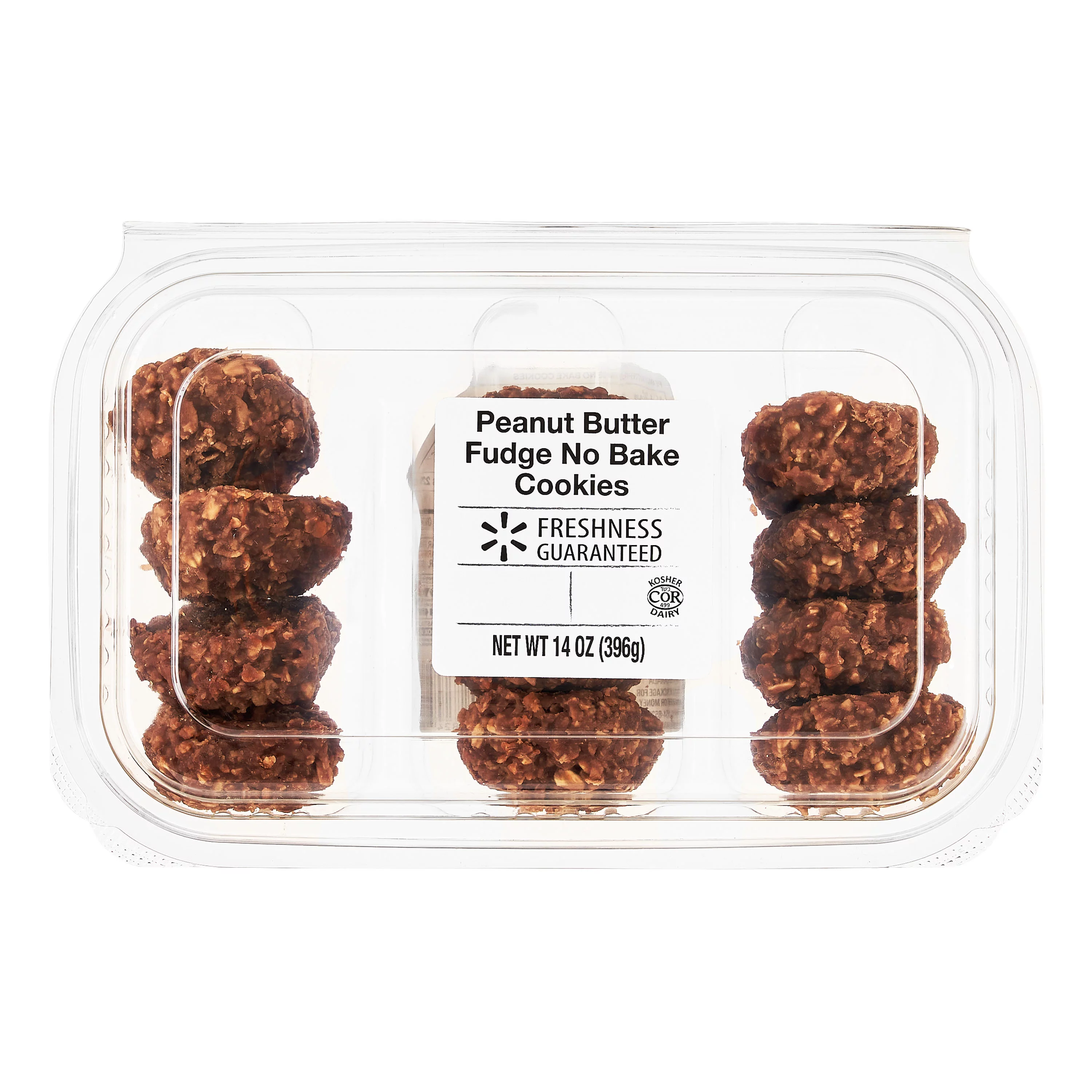 s are made with a flavorful combination of rolled oats, peanut butter, and vanilla. With 12 cookies per package, they are perfect for snacking, game day parties, school lunches, family gatherings, and more. Serve with a glass of cold milk or a scoop of vanilla ice cream to make it an extra special treat. Product is packed in a reclosable clamshell to maintain freshness. Best kept at shelf-stable temperatures. Treat yourself to some Freshness Guaranteed Peanut Butter Fudge No Bake Cookies today. Freshness Guaranteed provides you and your family with high-quality fresh food that saves you time and money, many of which are cooked fresh or prepared in stores. Convenient solutions with value added in every Freshness Guaranteed item.