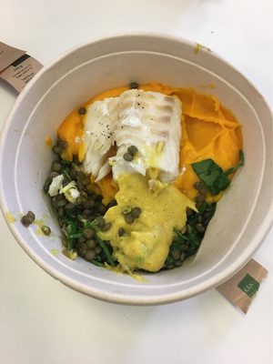 Mousseline De Carotte 50% (Carotte Bio*, Pomme De Terre, Oignon, Sel, Huile De Colza, Poivre), Lentilles Vertes Bio 18%, _Cabillaud_ Msc** 18%, Sauce Pickles 9% (_Celeri_ Rave, Chou-Fleur, Eau, Marinade Pickles (Vinaigre (_Sulfite_), Sucre, Huile D'Olive, _Moutarde_, Curcuma, Gingembre), Huile De Colza, Oignon, Pomme De Terre), Passe-Pierre, Épinard, Sel, Poivre. 45% Des Ingrédients Sont Issus De L'Agriculture Biologique.