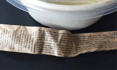 Ingredierpts• Riz 49%, Compotée À Ronentaie 27% (Aubergine, Poivron Rouge, Oignon, Sauce Tomate, Huile Dolive, Sel, Éptce - Raz-El - $ Hanout (Cexfri), Paprika, Potvre, Powrede Cayenne), Falafel 1496 (Eau, Pois Ch,Che, Huile Végétale (Soja Et]Ou Colza), Flocons D'Otgnon, W a. M Chapelure De Blé, Sel, (Blé), Épaississant (E1412), Épices, O,Gnon Séchés, Ail, Aheth, Persil, Céleri, Dextrose, Exhausteur De Sel, Levure, Amidon De Mais, Régulateurs (E450, E5M)), Oignon Sec D 2 Ê. (Raisin, Huile Decmon), Huile D'Olive, Curcuma, Riandre, Cumin, Sel, Poivre.