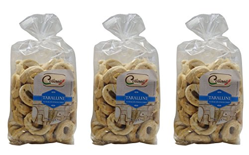 Taralli are a toroidal Italian snack foods, common all over the southern half of the Italian Peninsula. An oven baked product, a cracker similar in texture to a breadstick or a pretzel, Taralli by Certossa come in practical envelopes (500g/17.6oz each) to bring them with you to school, at work and anywhere you want!