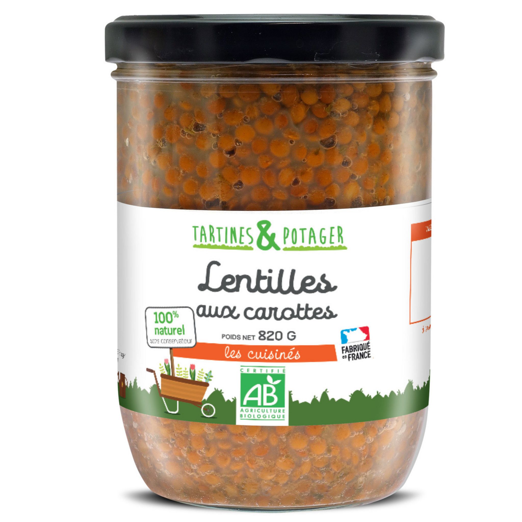 Lentilles* précuites 60%, carottes* précuites 38%, huile de tournesol*, sel marin. *Ingrédients biologiques.