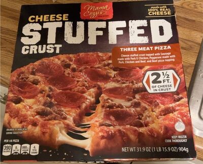 - The manufacturer of Cheese Stuffed Crust Three Meat Pizza is Mama Cozzis.