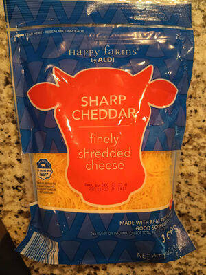 - The manufacturer of Finely Shredded Sharp Cheddar Cheese, Sharp Cheddar is Happy Farms.