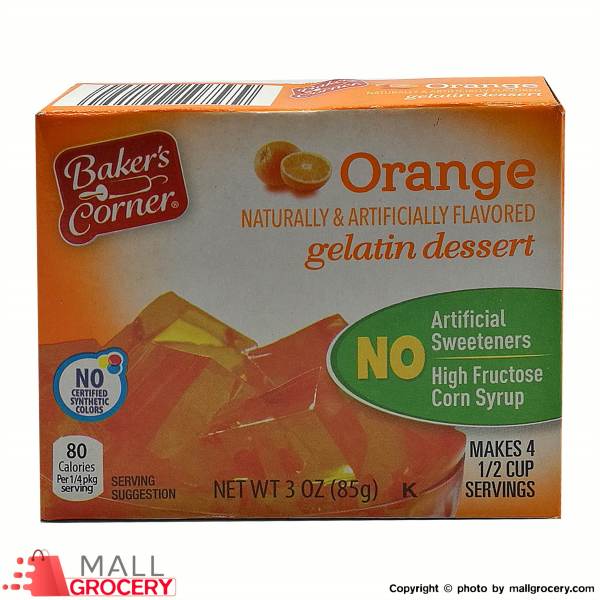 - The manufacturer of Orange Gelatin Dessert is Bakers Corner.
