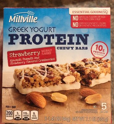 - The manufacturer of Greek Yogurt Protein Chewy Bars is Millville.