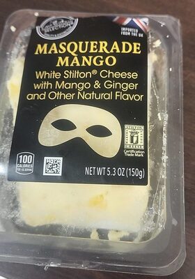 White Stilton Cheese (Pasteurized Milk, Salt, Enzymes, Dairy Cultures), Sweetened Dried Mango (17%) (Dried Mango, Sugar, Citric Acid As Acidity Regulator), Crystallized Diced Ginger (10%) (Ginger, Sugar), Natural Flavor, Preservative: Potassium Sorbate.