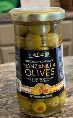 - The manufacturer of Fresh Finds, Imported Manzanilla Olives Stuffed with Minced Pimento is Fresh Finds.