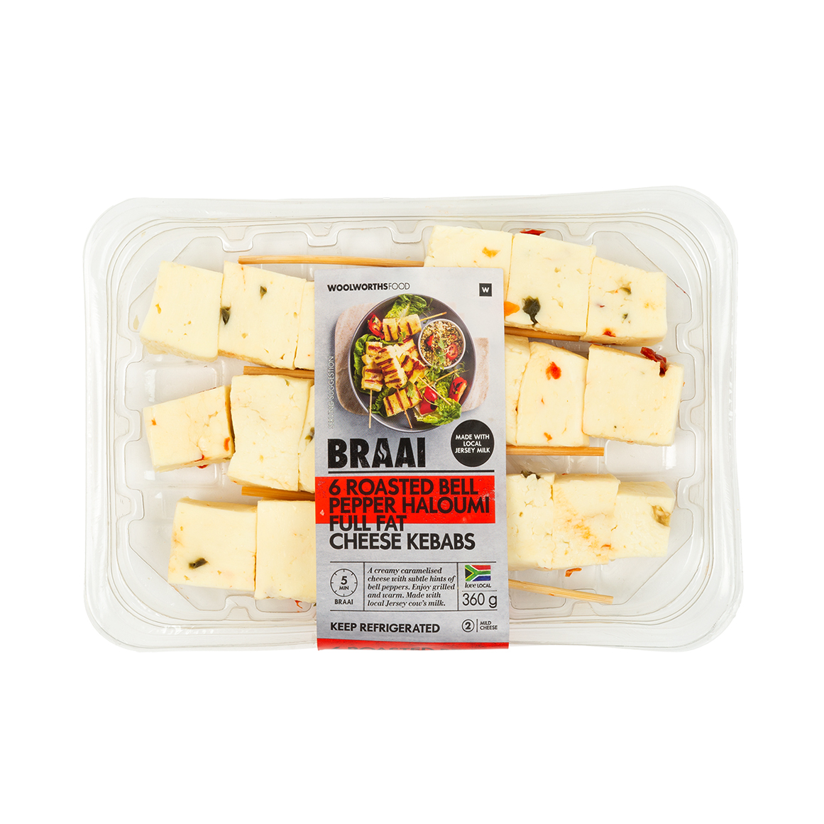 Perfect for your braai. Grill for 4 minutes. Air fry for 7 minutes. Enjoy grilled and warm. . THIS PRODUCT. 360 g. Halaal. Vegetarian with milk. Mild cheese. Made with local jersey cow's milk. No added preservatives. . DISCLAIMER. Although the greatest care has been taken to ensure the accuracy of product information on our website/ APP, product recipes and ingredients change from time to time. Therefore, it is recommended that this information is used as a guideline only and that product labels are read with care.