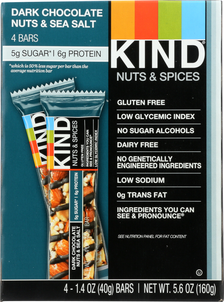 - The manufacturer of Nuts & Spices Bars, Dark Chocolate Nuts & Sea Salt is Kind.