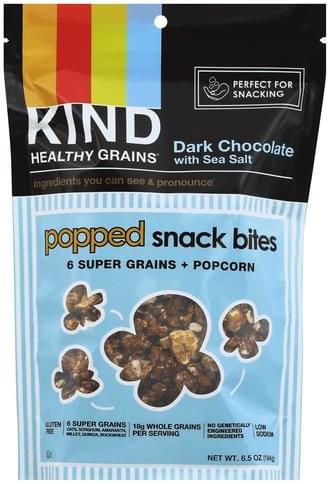 - The manufacturer of Dark Chocolate with Sea Salt Popped Healthy Grains Snack Bites, Dark Chocolate with Sea Salt is Kind.