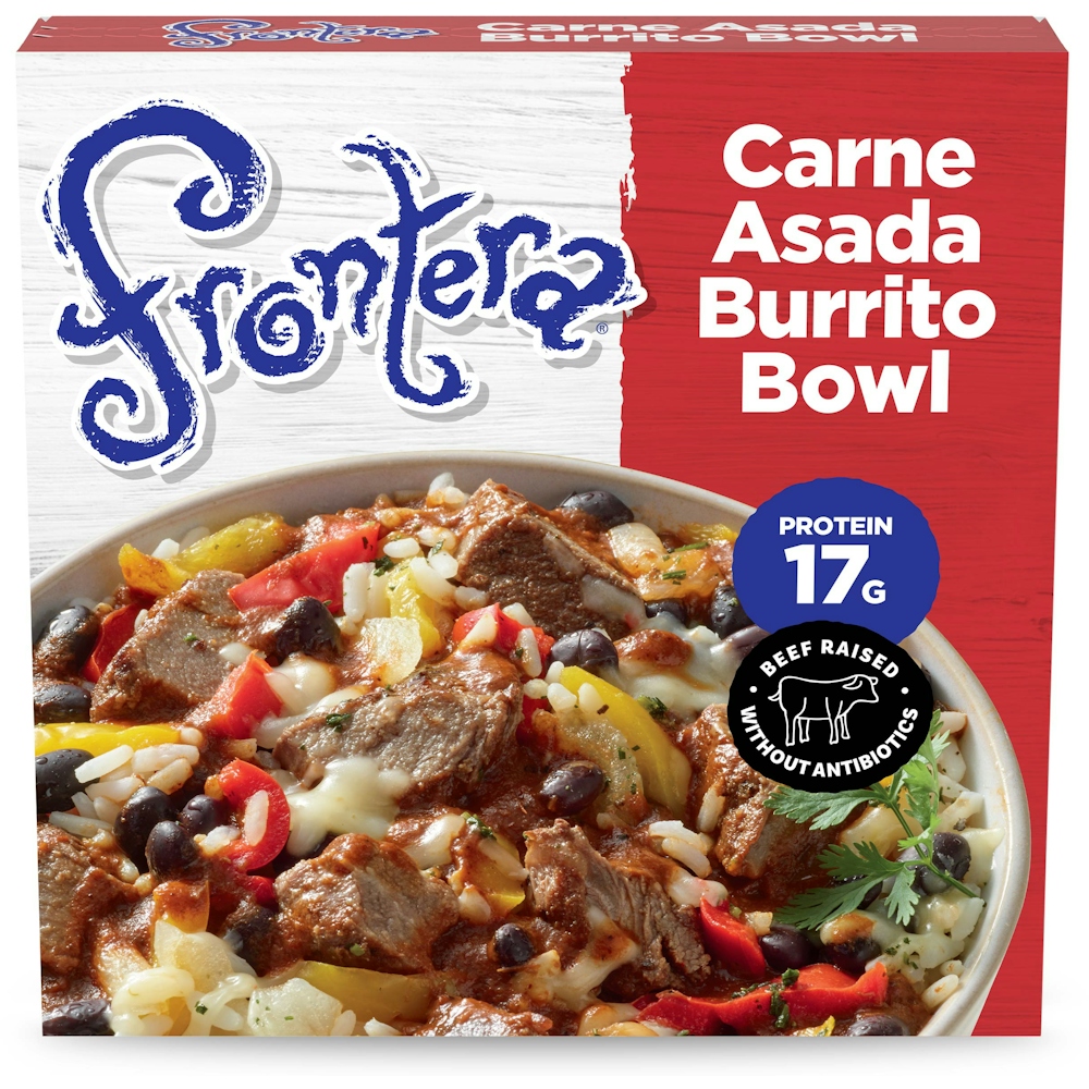 Add some sizzle to your day with a Frontera Carne Asada Burrito Bowl Frozen Microwave Meal. Seared beef with three chile sauce, cilantro rice, black beans, bell peppers and pepper jack cheese come together for a fiesta of flavors. This gourmet Mexican cuisine from Chef Rick Bayless makes the perfect lunch or dinner, and is ready in minutes. It contains beef raised without antibiotics and 17 grams of protein per serving. Top with your favorite Frontera salsa for a little extra kick.