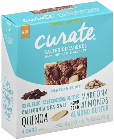 - The product category for Curate, Snack Bars, Dark Chocolate & Almonds, Dark Chocolate & Almonds is Candy & Chocolate.
