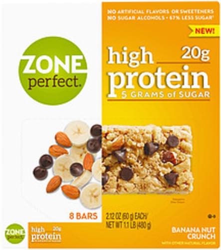 - The manufacturer of High Protein Bars, Banana Nut Crunch is Zone Perfect.