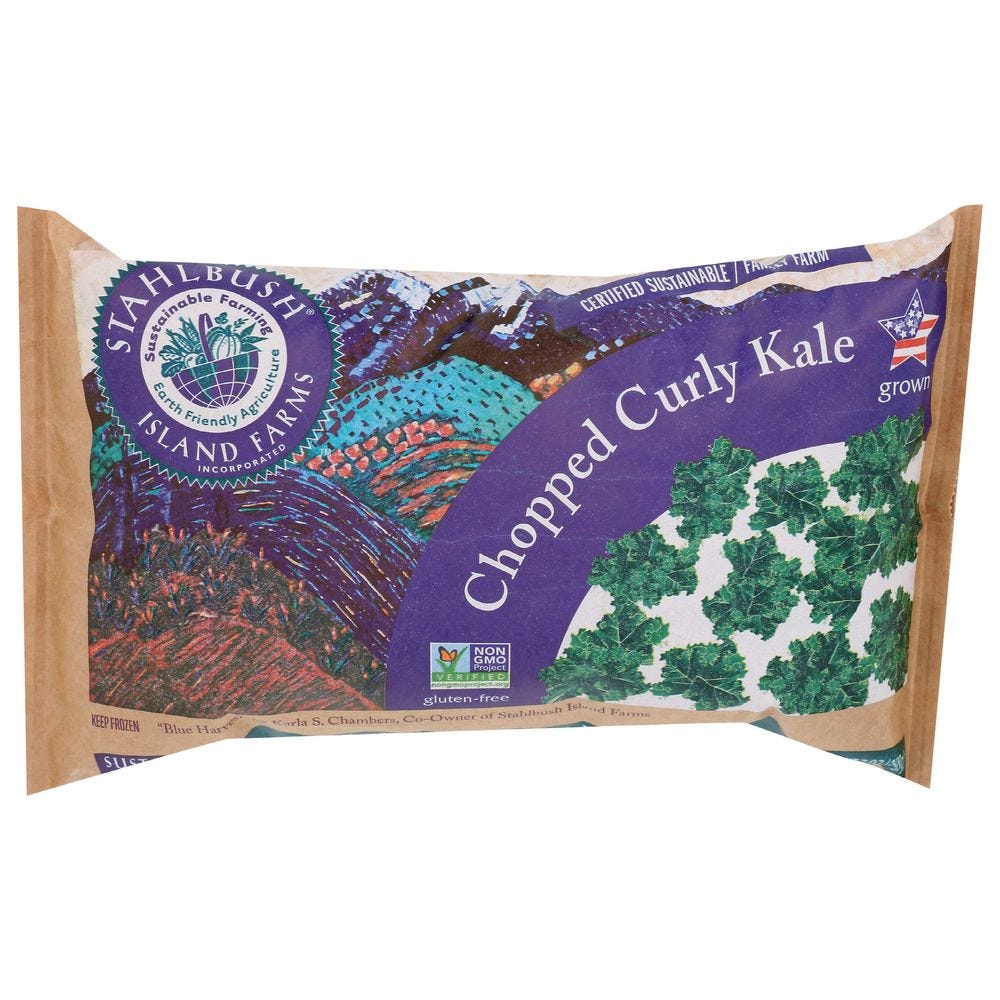 - The manufacturer of Chopped Curly Kale is Stahlbush Island Farms.