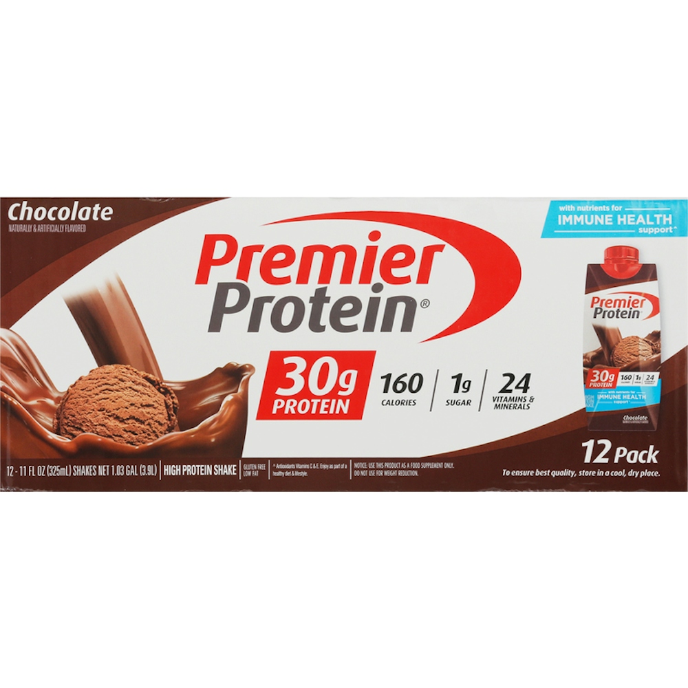 Each Premier Protein Shake contains 30g of protein, complete with all the essential amino acids, 1g of sugar, 3โ5g of carbs (depending on flavor), 160 calories, 24 vitamins and minerals, and is also low in fat. We use a blend of milk protein concentrate and calcium caseinate to help support your fitness goals. Enjoy a shake as a healthy snack, a breakfast on the go, or as post or pre-workout fuel. They are delicious as is but also highly customizable. Blend with your favorite fruits and vegetables in a smoothie, pour over cereal or oatmeal, or use as a base for proffee (protein coffee) or protein ice cream.