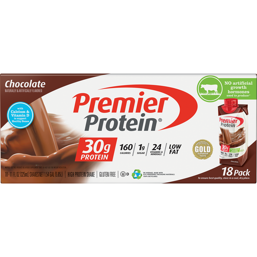 Ingredients: Water, Premier Protein Shake Protein Blend (Milk Protein Concentrate, Calcium Caseinate, Whey Protein Concentrate), Cocoa Powder (Processed with Alkali), Contains 1% or Less of the Following: High Oleic Sunflower Oil, Inulin, Cellulose Gel and Cellulose Gum, Magnesium Phosphate, Datem, Salt, Natural and Artificial Flavors, Sucralose, Acesulfame Potassium, Carrageenan, Vitamin and Mineral Blend (Sodium Ascorbate [Vitamin C], Dl-Alpha Tocopheryl Acetate [Vitamin E], Zinc Amino Acid Chelate, Biotin, Vitamin a Palmitate, Niacinamide, Potassium Iodide, Copper Amino Acid Chelate, Calcium D-Pantothenate, Chromium Chloride, Cyanocobalamin [Vitamin B12], Phytonadione [Vitamin K], Sodium Molybdate, Sodium Selenite, Folic Acid, Cholecalciferol [Vitamin D3], Pyridoxine Hydrochloride [Vitamin B6], Thiamine Mononitrate [Vitamin B1], Riboflavin [Vitamin B2]), Ferric Orthophosphate, Manganese Sulfate, Tripotassium Phosphate, Dipotassium Phosphate, Sodium Polyphosphate.