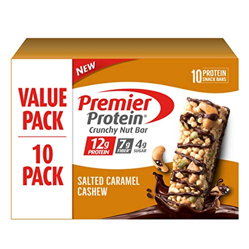 New Premier Protein Crunchy nut Bar with 12g protein, 6g fiber, 4g sugar. Packed with tasty nutrition and a good source of protein & Fiber, this delicious snack bar will help you achieve your goals while satisfying your taste buds. Made with real nuts and seeds, enjoy the same great taste of Premier Protein bars, now in a new crunchy form.