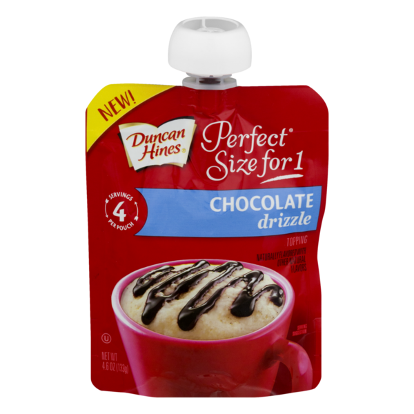 Naturally flavored with other natural flavors. 4 servings per pouch. New! Create Your Own Perfect Experience! Drizzle over your favorite Duncan Hines Perfect Size for 1 cake. Put some fun in your cake with endless customizations. Duncanhines.com For creative drizzle ideas and amazing recipes, please visit Duncanhines.com/PS41 or share your twist on Facebook. Pairs perfectly with Duncan Hines Perfect Size for 1 Hot Chocolate Cake. Product of Canada.