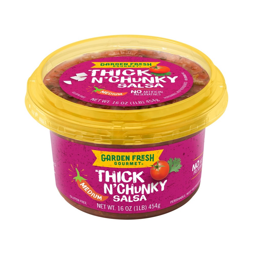 - The product category for Garden Fresh Gourmet, Thick & Chunky Salsa, Medium, Medium is Salsa.