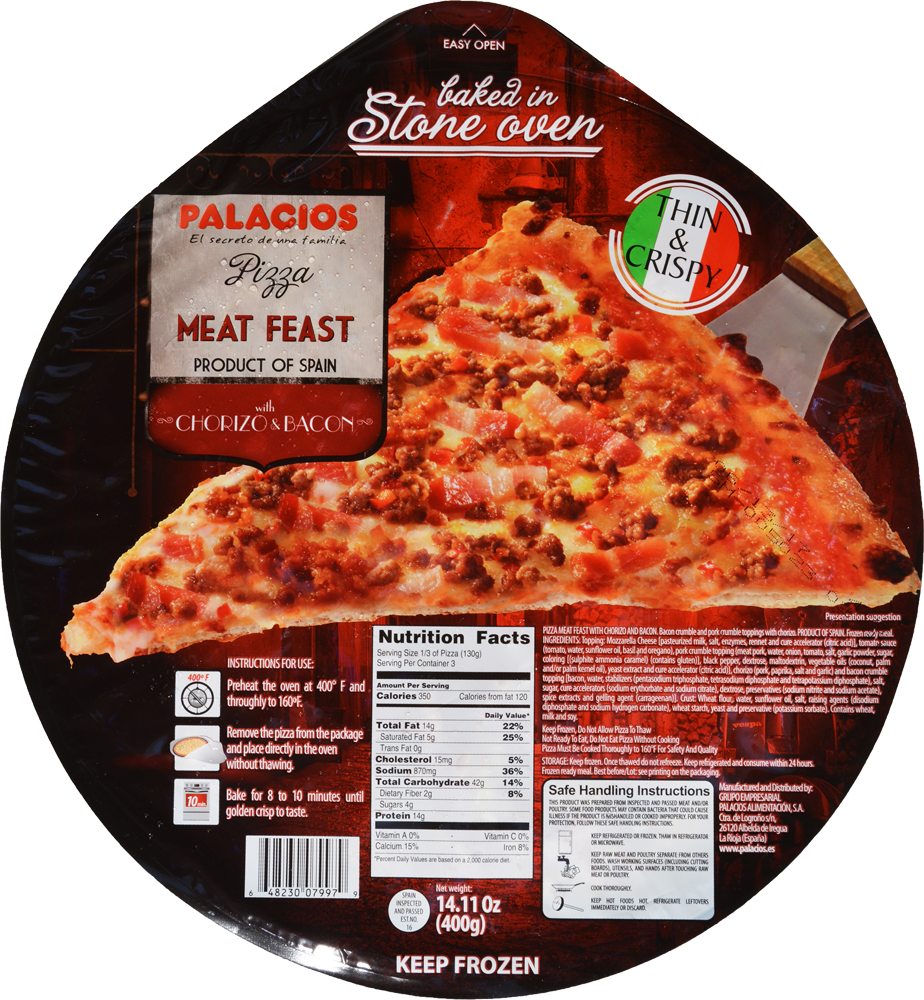 - The manufacturer of Meat Feast Pizza is Palacios.