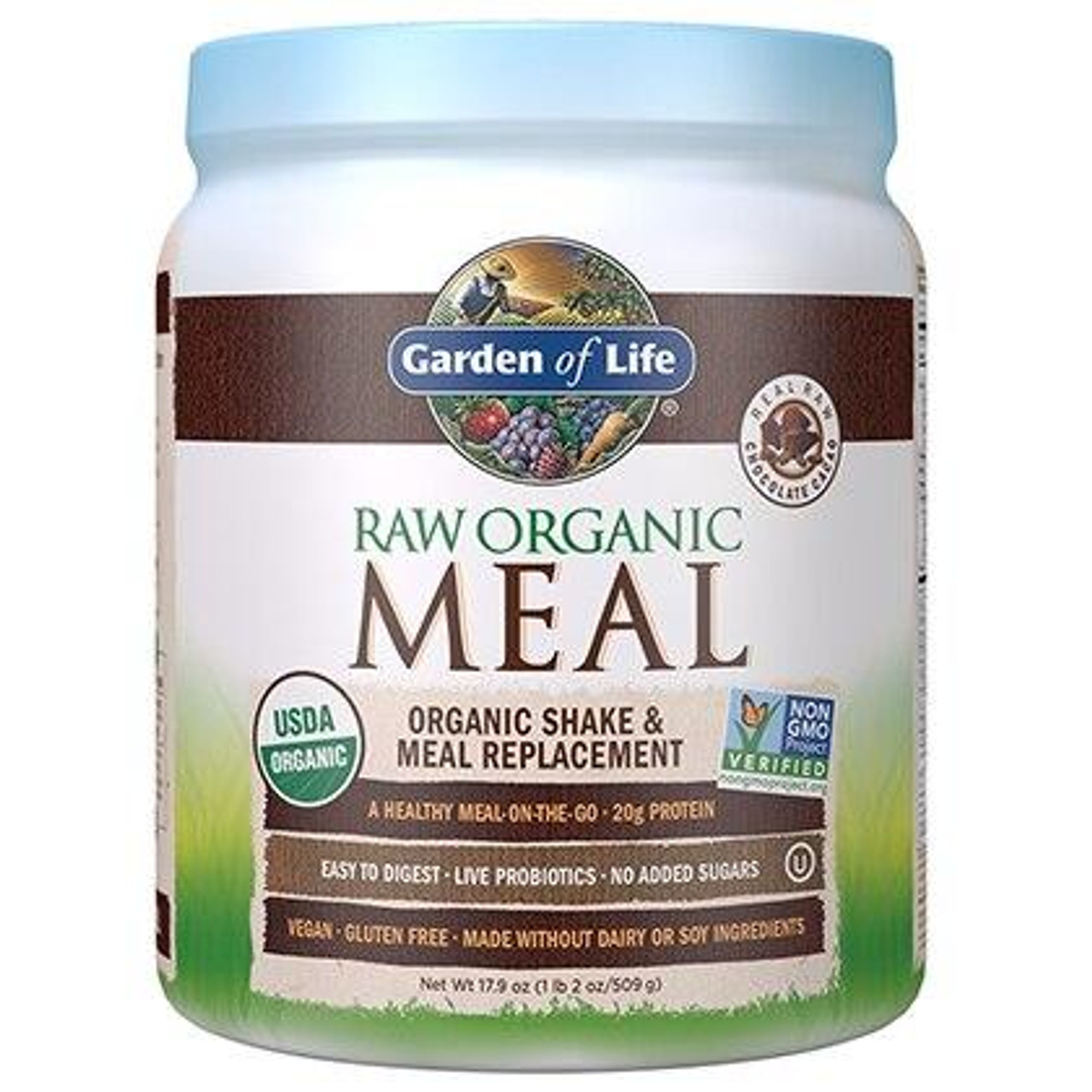 - The manufacturer of Raw Organic Meal Protein 20 G Powder, Chocolate Cacao, Chocolate Cacao is Garden of Life.