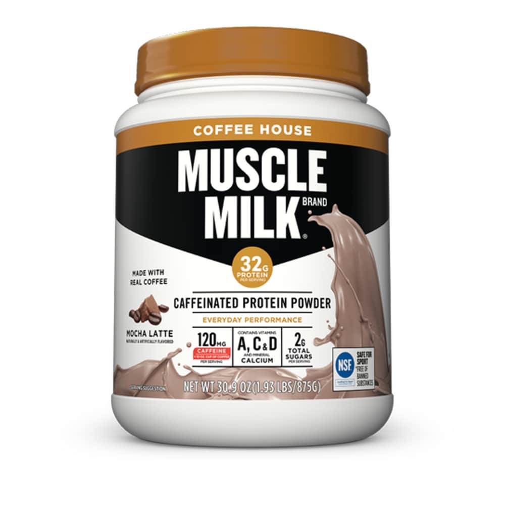 Muscle Milk Coffee House Protein Powder, Mocha Latte, 32g Protein, 1.93 Pound; Instructions: Shake before using. Do not freeze. Refrigerate after opening. WAKE UP. ENERGIZE. WORKOUT. FEEL AWESOME. – Whether this is your go-to morning beverage or your afternoon pick-me-up, MUSCLE MILK Coffee House Protein Powder helps wake you up and get you there. PROTEIN + CAFFEINE – A WINNING COMBINATION. Skip the line and save time and money by making MUSCLE MILK Coffee House Protein Powder part of your day. These familiar and delicious flavors are yours to enjoy, hot or cold, in the comfort of your home. 32g Protein, 120mg Caffeine, 2g Sugar. Made with real coffee; Excellent source of vitamins A,C and D, minerals calcium and magnesium; Soy and gluten free.
