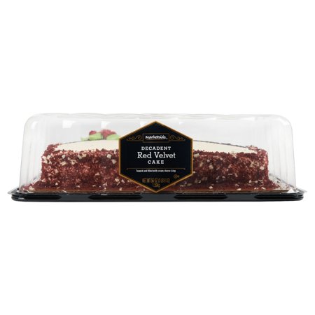 This decadent Marketside ¼ Sheet Red Velvet Cake is elegantly decorated and sure to impress your honoree, guests, and family. Surprise your friends and family with this moist red velvet cake, filled and iced with real cream cheese buttercreme icing and finished with an elegant chocolate spiral design and two small roses with green leaves. The sides are finished with a mixture of crushed white chocolate curls and red velvet cake crumbs for an elegant finish. We've left room on top to personalize this cake with a name or special message. Make any occasion a special occasion with the Marketside ¼ Sheet Red Velvet Cake. Fresh ideas and quality ingredients, that's how Marketside brings the best foods to your table. We are committed to deliver freshness that you can taste and see. Marketside offers the best in fresh food, guaranteed by Walmart, working in partnership with farmers, bakers and chefs for the highest quality, authentic ingredients and favorite recipes.