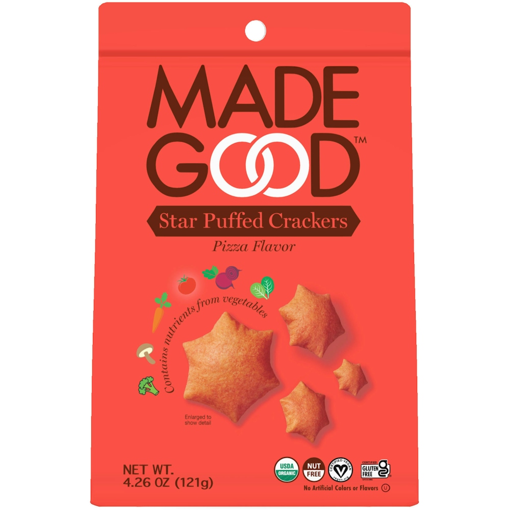 - The manufacturer of Pizza Flavored Organic Star Puffed Crackers, Pizza is MadeGood.