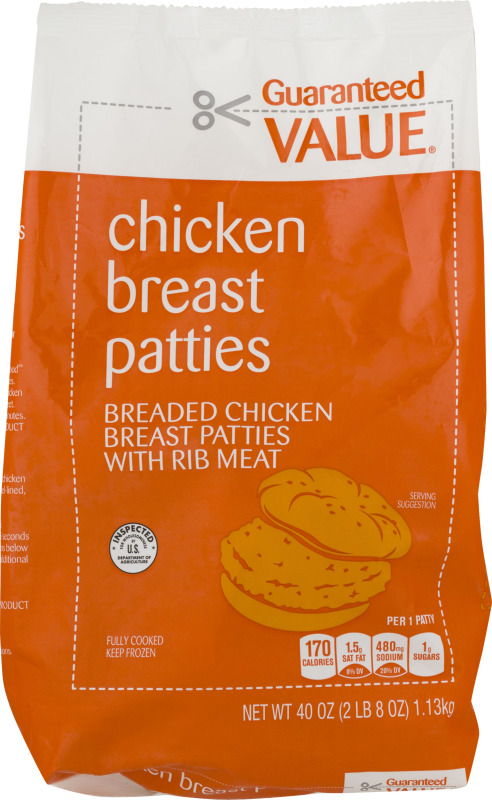 - The manufacturer of Chicken Breast Patties is Guaranteed Value.