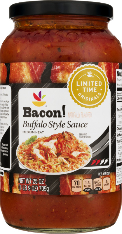 - The product category for Buffalo Style Sauce, Bacon! is Condiments & Sauces.