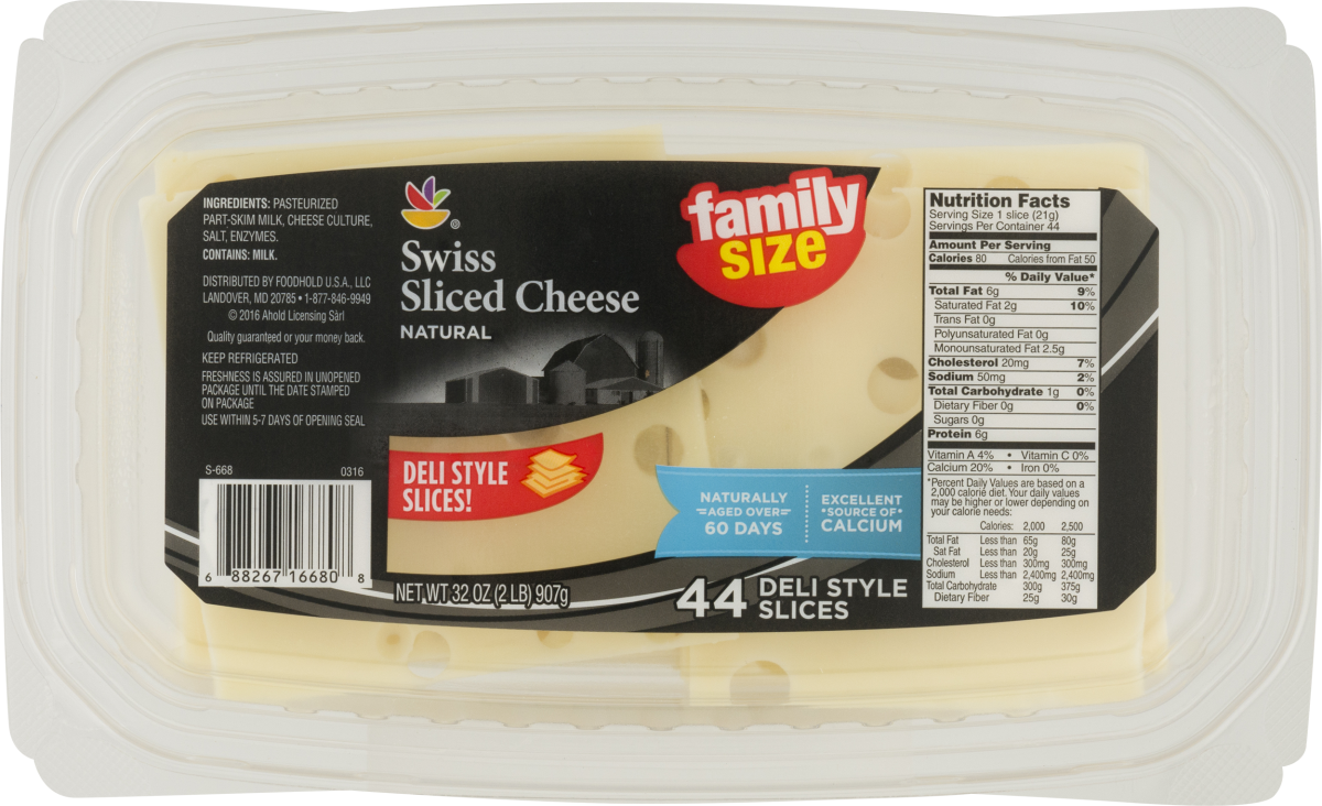 - The manufacturer of Swiss Cheese Sliced is Ahold.