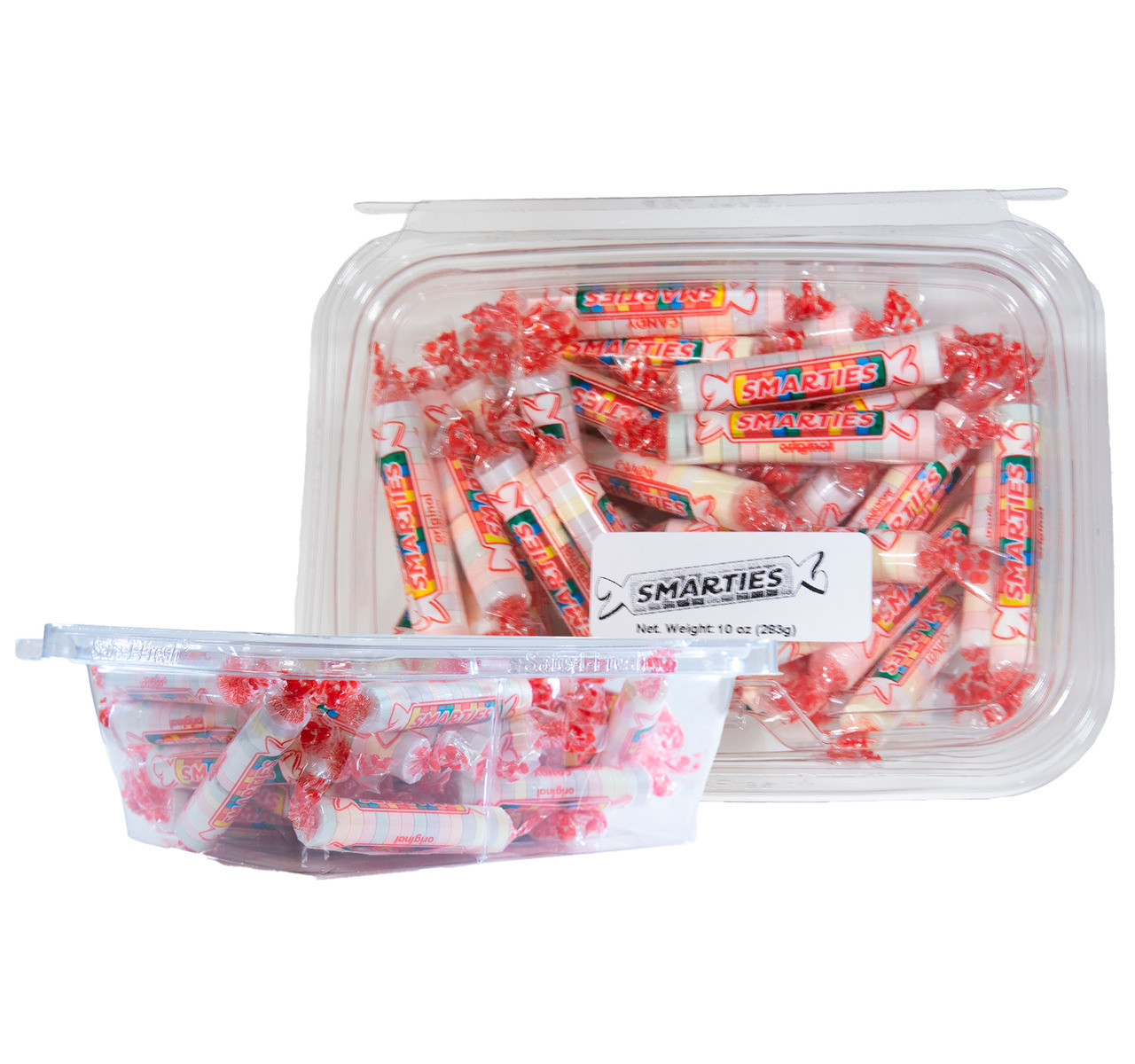 Smarties (Dextrose, Citric Acid, Calcium Stearate, Natural and Artificial Flavor, Color (Red 40 Lake, Yellow 5 Lake, Yellow 6 Lake, Blue 2 Lake))